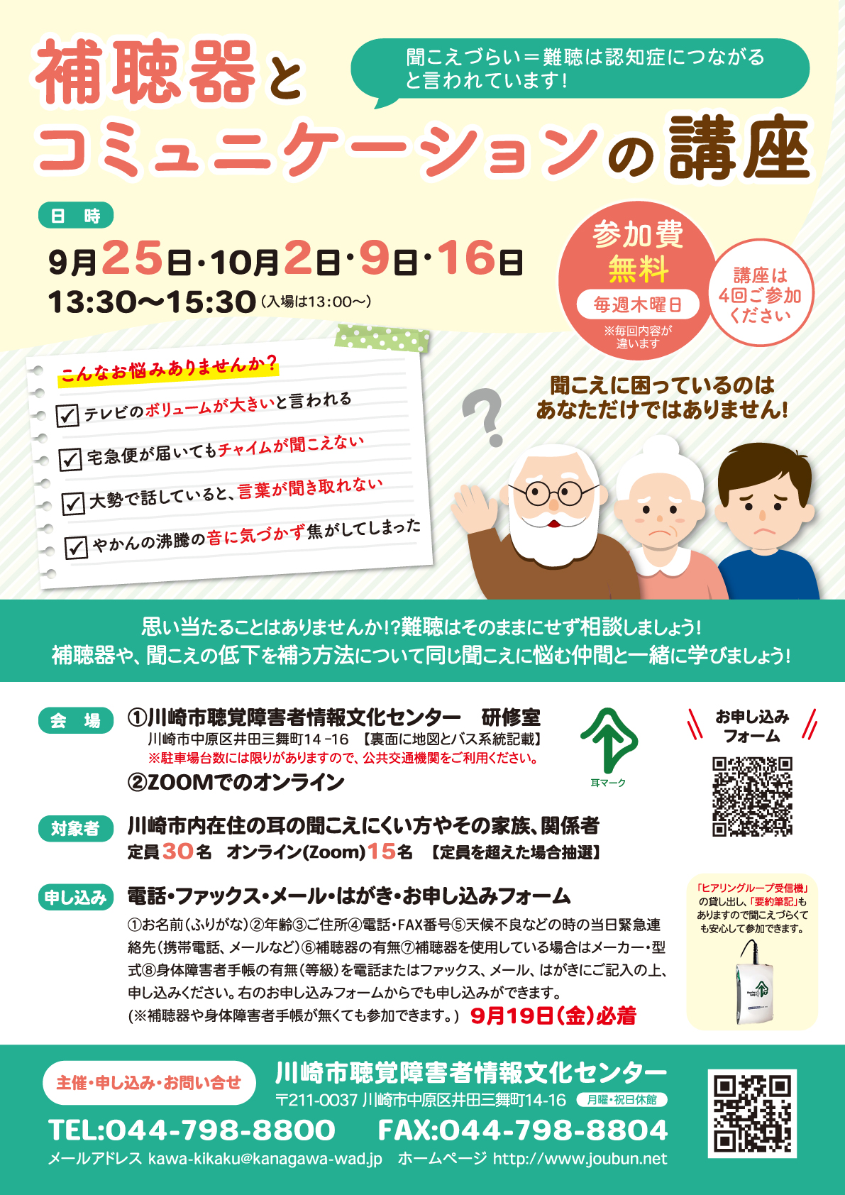 | 目的 | 補聴器とコミュニケーションの講座の受講者募集・案内 |