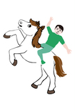 | 会の夏イベント課題として描き、後にプリントパックの公募にも応募しましたが落選。今回は14案作成しましたが、これはその7作目。オーソドックスな年賀状、もう一工夫したり、ペンツールを上手に使えるようにしたいと思っています。今回は透明マスクの機能を使った作品が多いです。午年なので暴れ馬に乗ったロディオをイメージしたイラストを多用しました | |