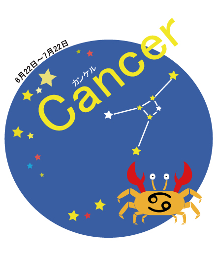 | Tシャツデザインを作るイベント課題で、他の人の話のヒントから12星座を選択して書き始めた1作目です。白地のTシャツの胸中央に印刷するつもりで描きました。今まで星座に興味もなく自分の星座がかに座であることは知りませんでした。青い円形の背景は、この後各12星座のひとシリーズとして使用し仕上げることにしました。 | |