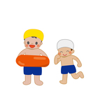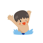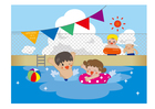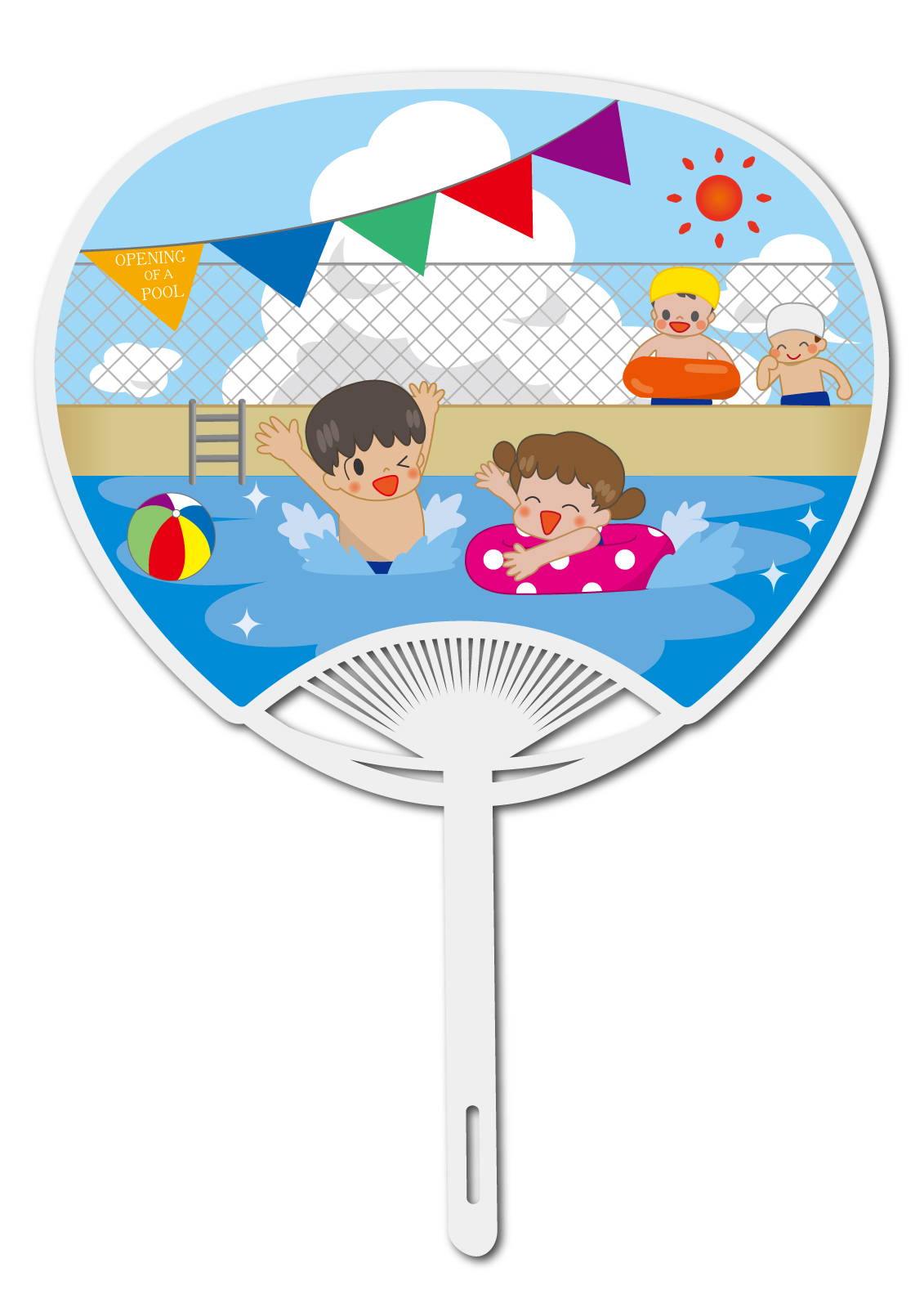 | 待ちにまったプール開きではしゃぐ子供たちのイラストのうちわです | |