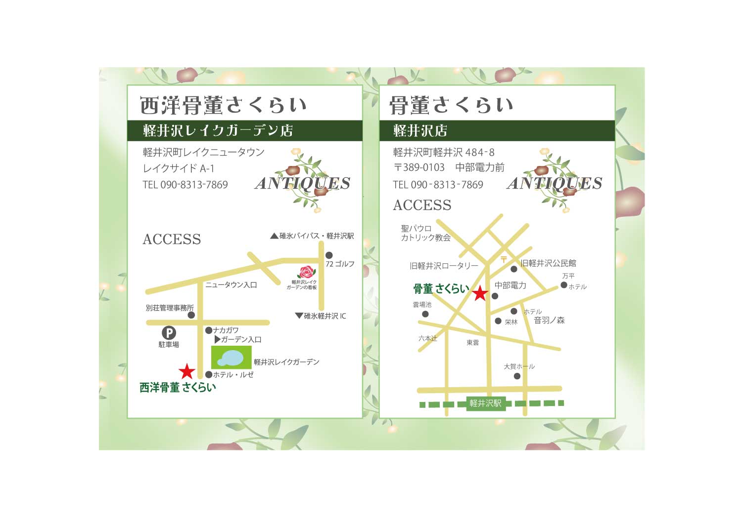 | A52つ折チラシの下半分の西洋骨董(アンティーク)店の紹介です。上半分はASAさん(http://w3s.jp/profile.php?id=121)が担当しています。 | |