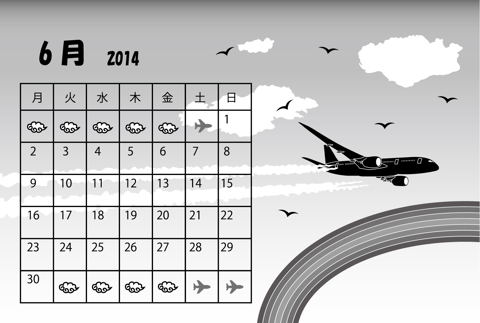 | 2014年6月用カレンダーです。 6月なので雨上がりの夏というイメージで作成しました。 | |