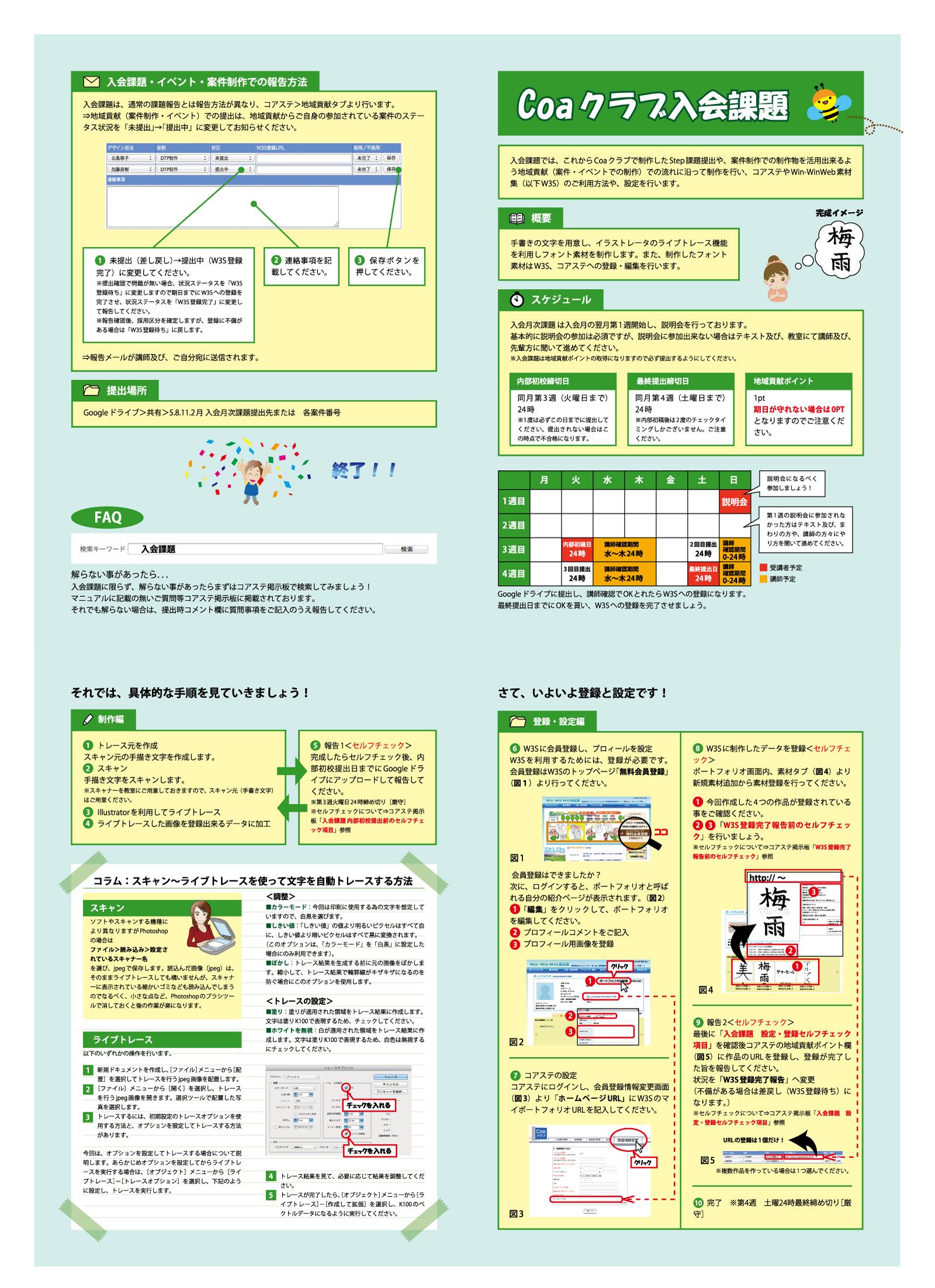 | Coaクラブの入会課題資料です。 なるべくすっきりしてて、わかりやすくと思い作成致しました。 | |