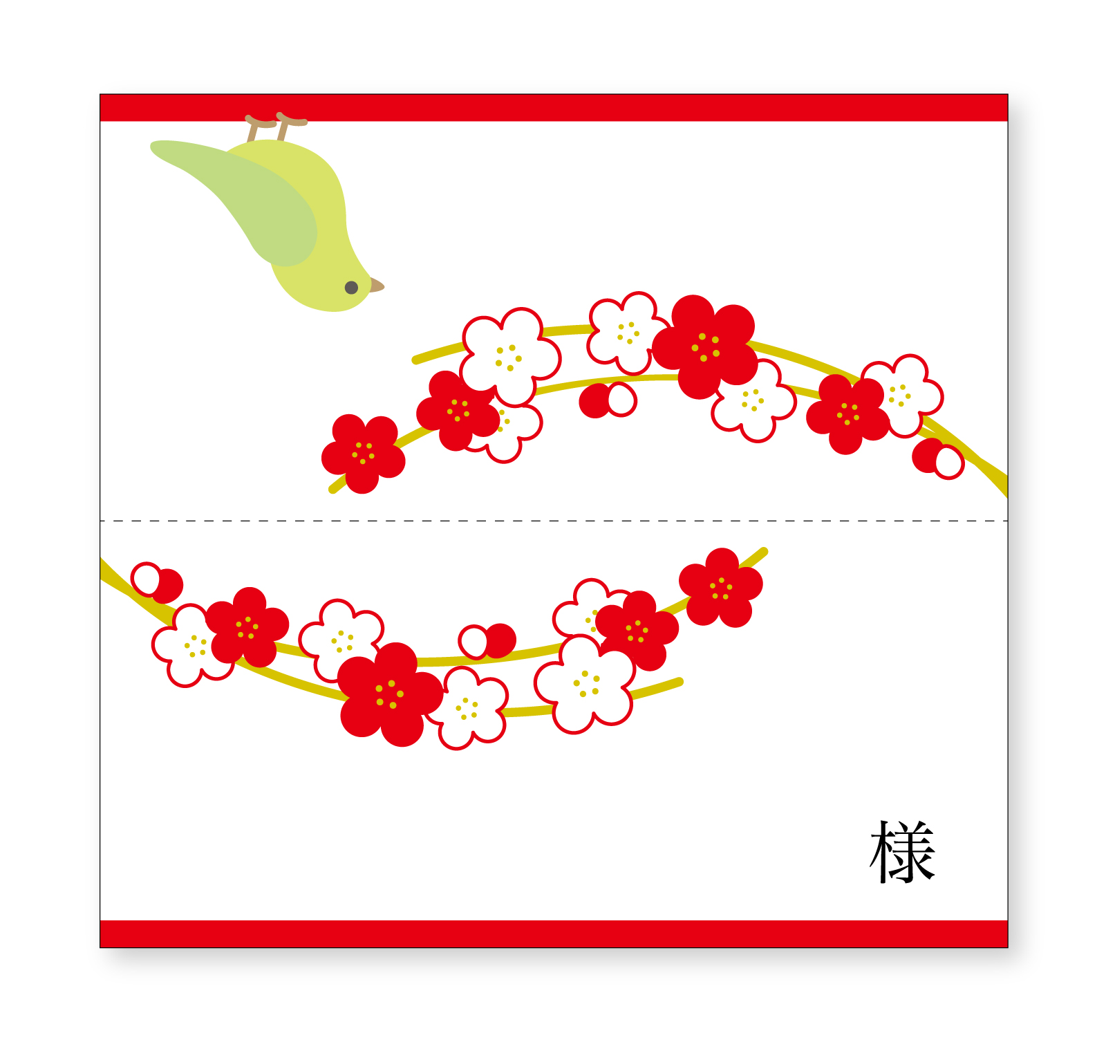 | めでたいということで、紅白(梅)に金色の色で、シンプルでPOPな感じで作りました。 | |