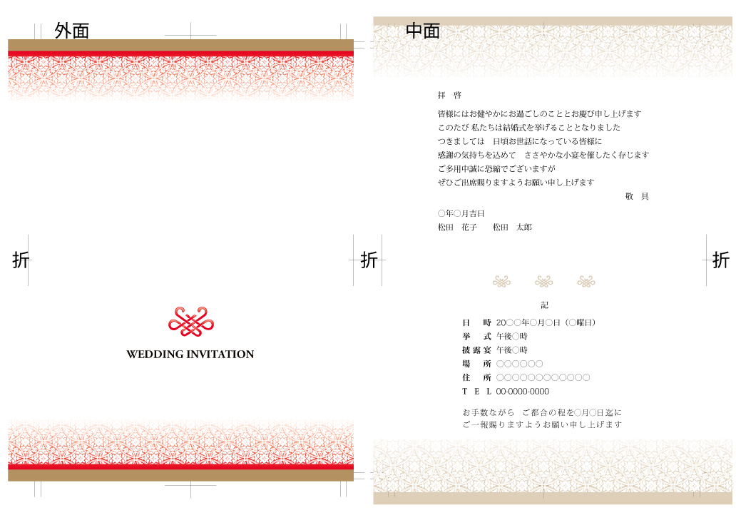 | 結婚式の招待状 縁起の良い七宝模様と宝結びをあしらったデザイン | |