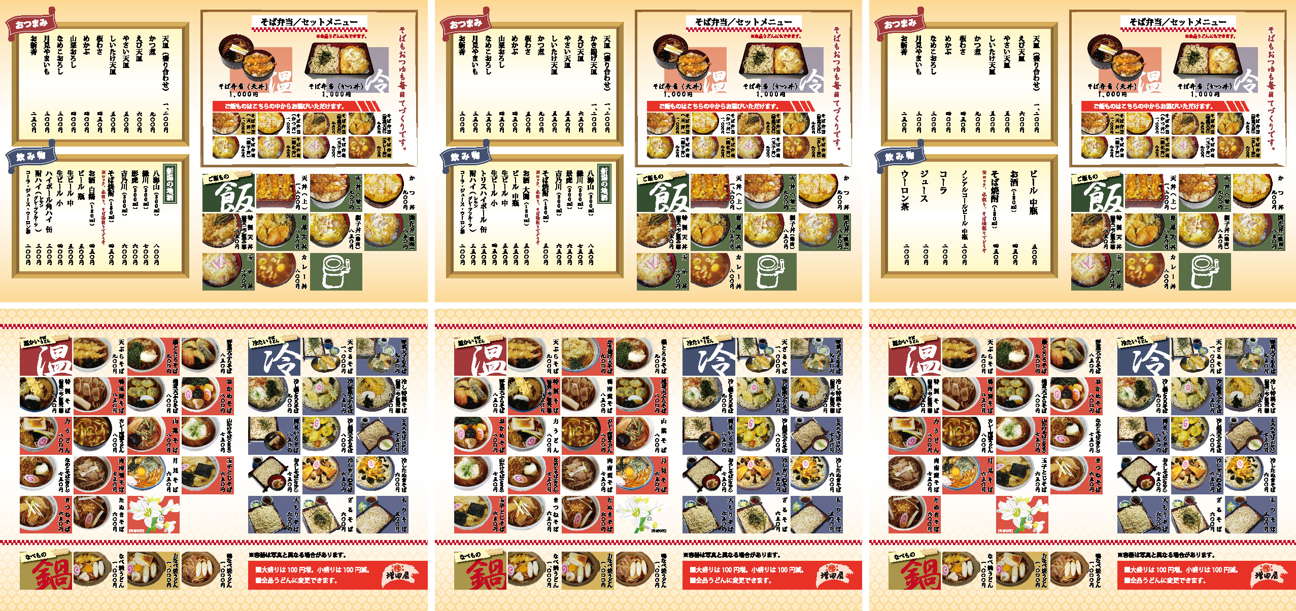 | 制作物名 | 増田屋様店内用「おしながき」メニュー3種 |