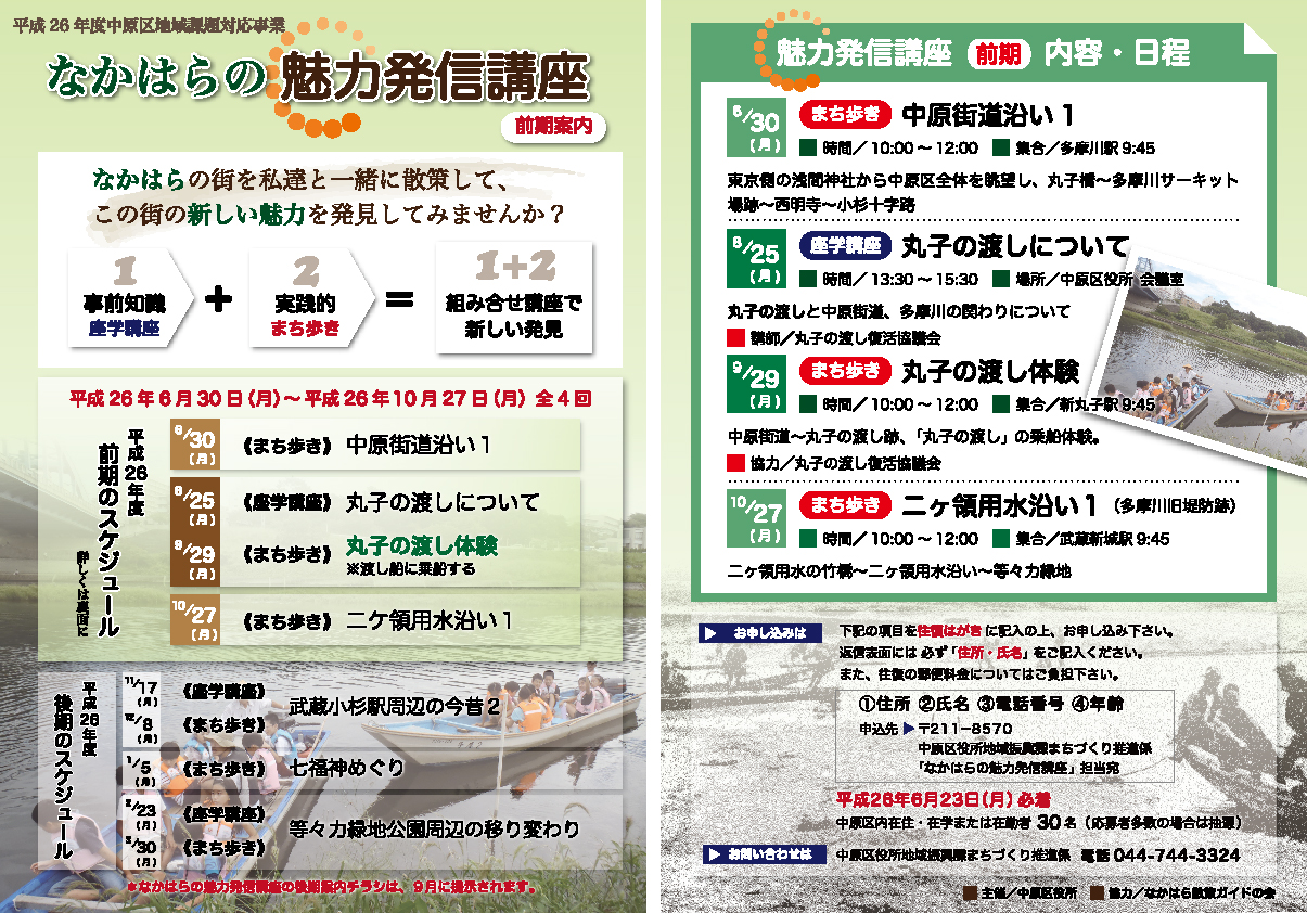 | 中原の魅力を出来るだけ出せるように制作しました。 スケジュールの部分は応募してきた方が一目でわかるようにメリハリをつけてみました。 | |