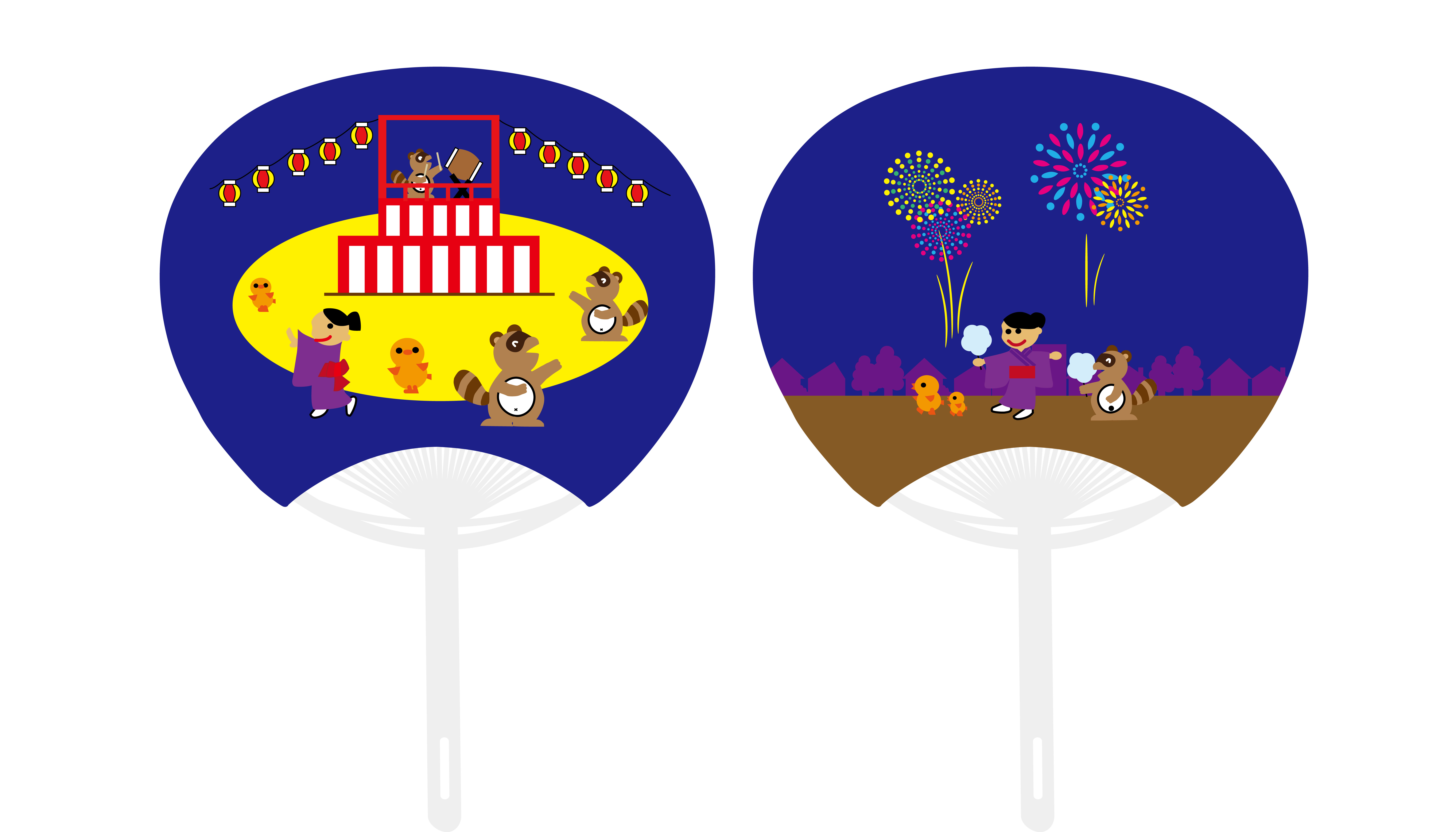 | 夏と言えば、盆踊りに花火大会! 動物達も一緒に踊ったりしてますよ。楽しいですね! | |