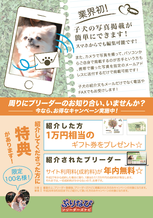 | 制作物名 | ブリーダーズナビ A5チラシ(裏) |
