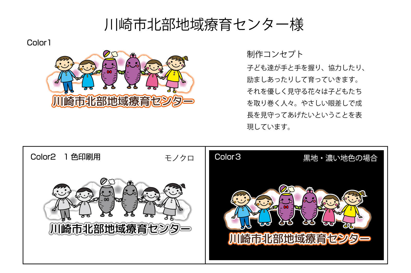 | 花々で子どもたちを見守る周囲の人々の優しさを表しました。 | |