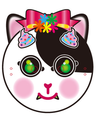 | ネコのお面です。アイスクリームの角をつけて明るい感じにしました。 | |