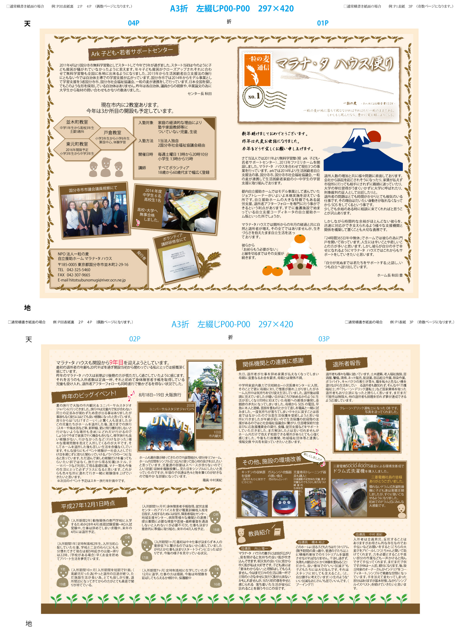 | 制作物名 | 会報誌「マラナ・タ ハウス便り」 |
