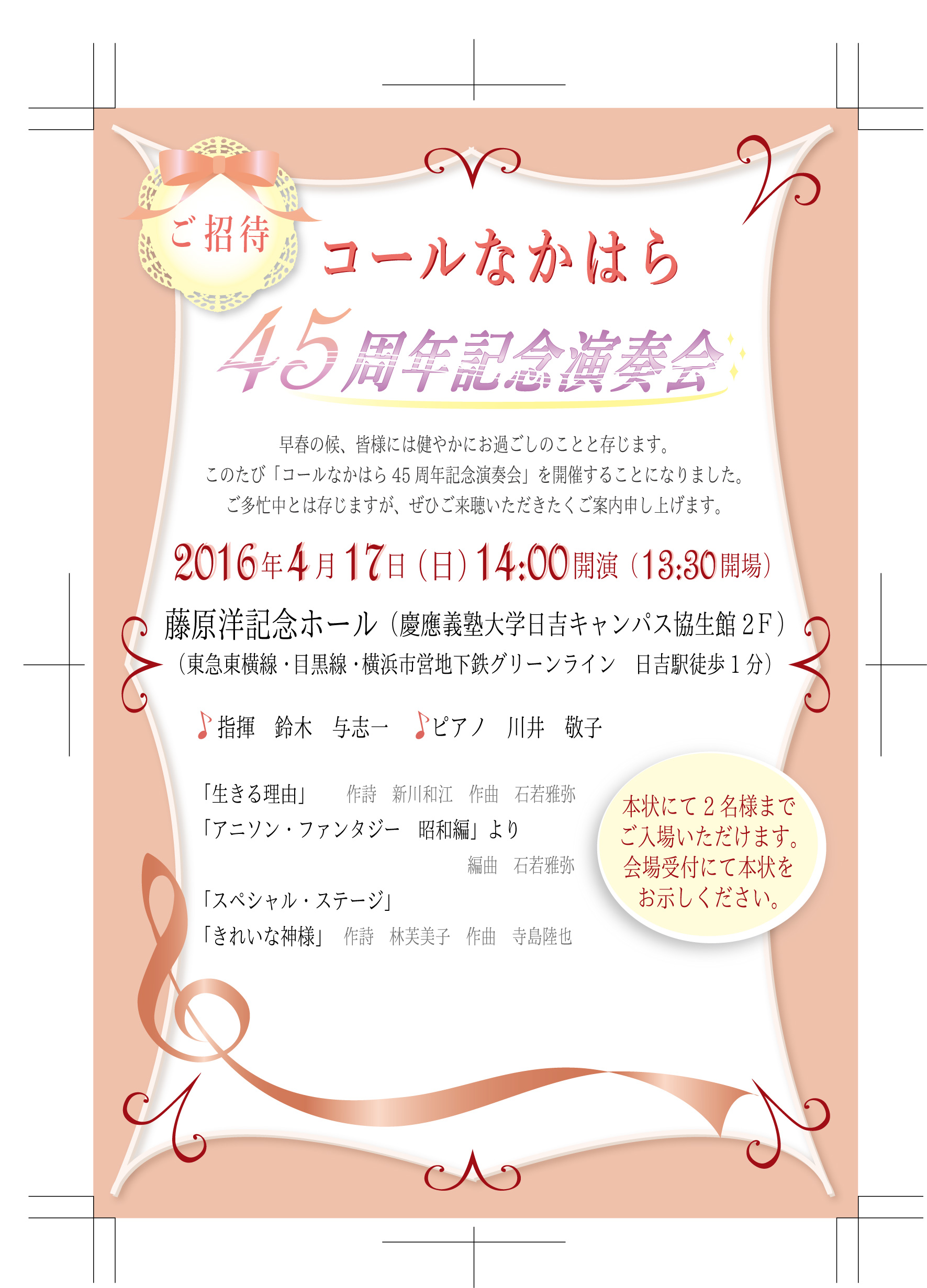 | 制作物名 | コールなかはら様 演奏会招待状_B |