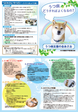 | 目的 | うつ病と自殺低減を目的とした啓蒙と会の紹介 |