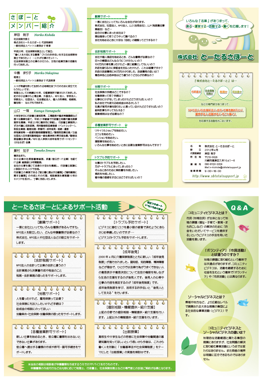 | 制作物名 | 株式会社とーたるさぽーと様パンフレット |