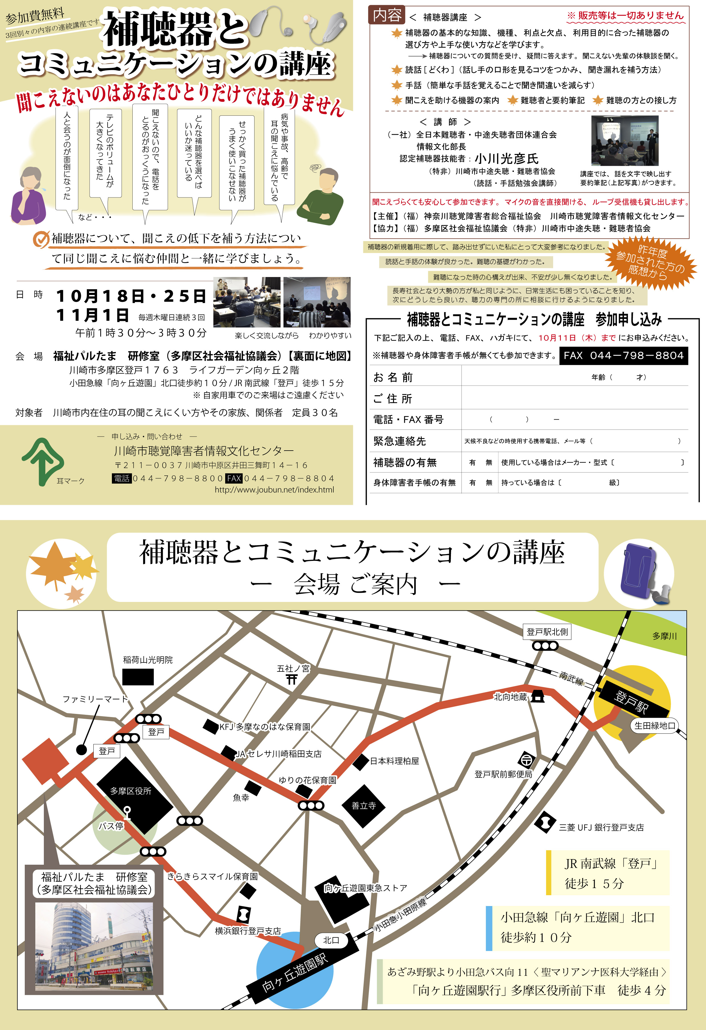 | 制作物名 | 補聴器とコミュニケーションの講座 (A3チラシ) |