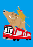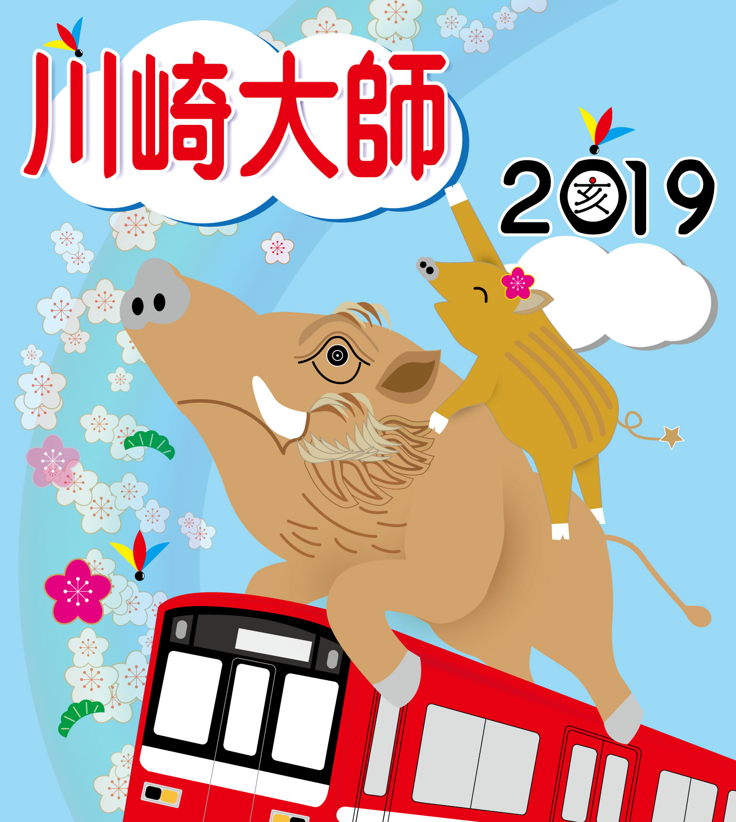 | 新年に向け気合をいれているお父さんイノシシと希望いっぱいのイノシシの女の子を描いてみました。大師線に乗って川崎大師へお参りすればご利益がいっぱいありそうです。 | |