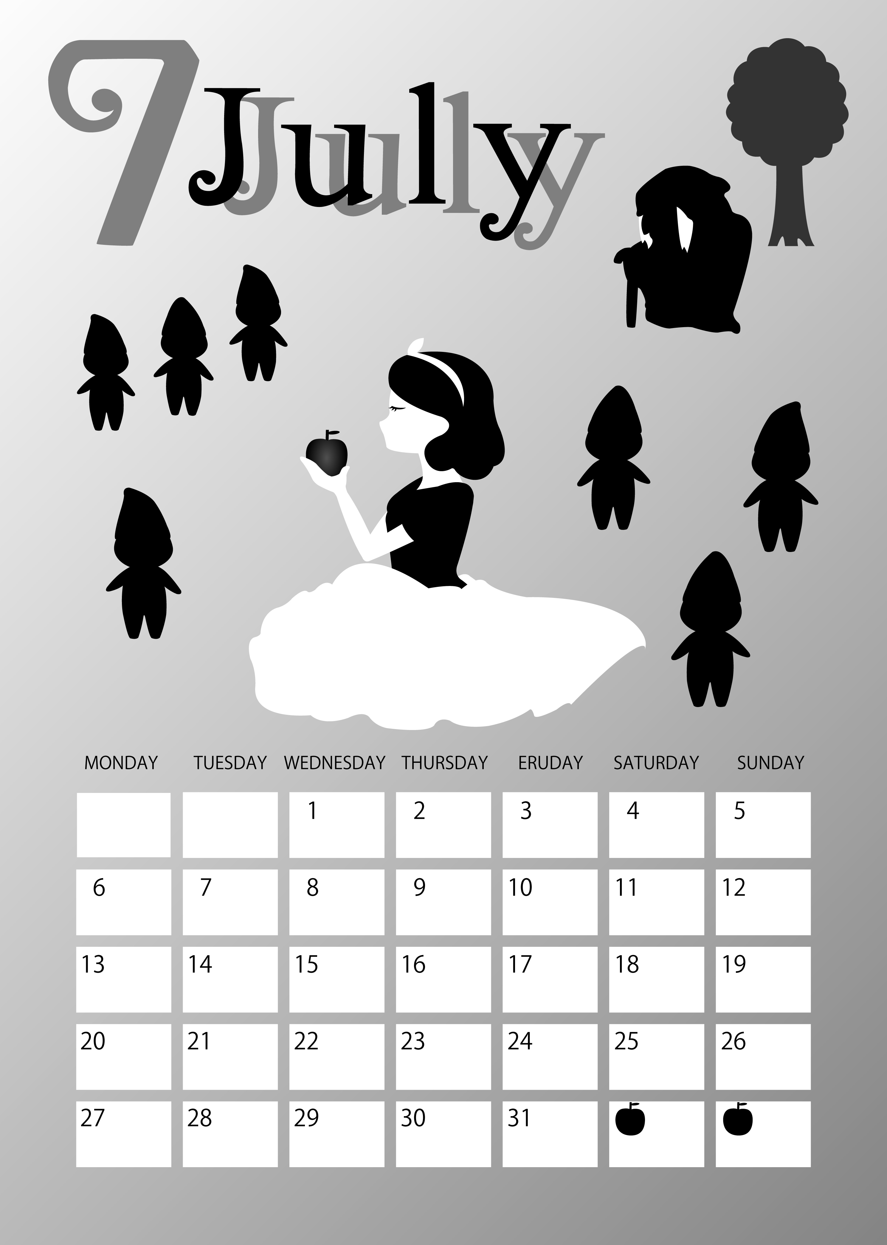 | 「白雪姫」の7月のカレンダーです。 | |
