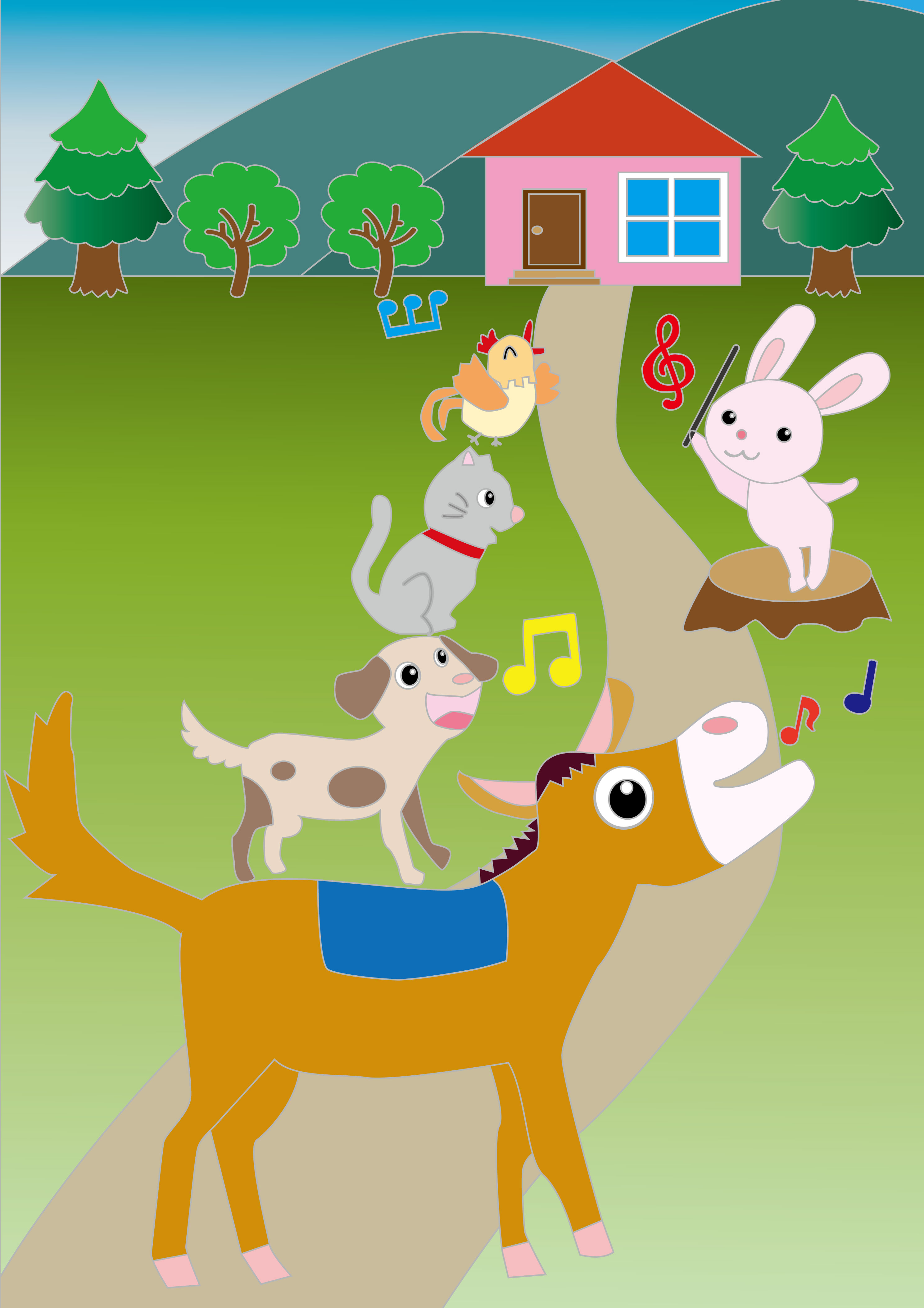 | 田舎でブレーメンの動物たちが歌っているところです。 | |