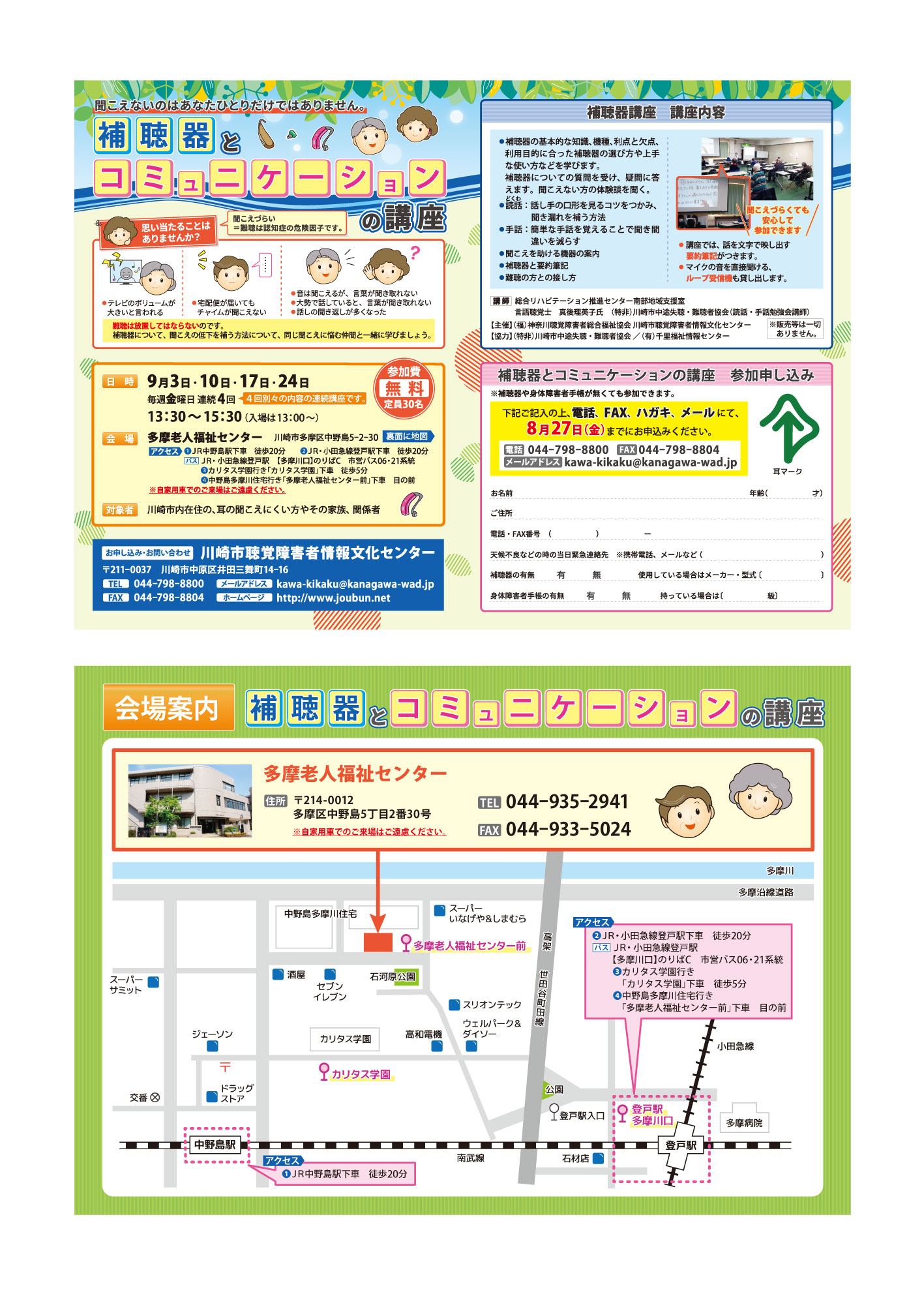 | 目的 | 補聴器とコミュニケーションの講座の告知チラシとして |