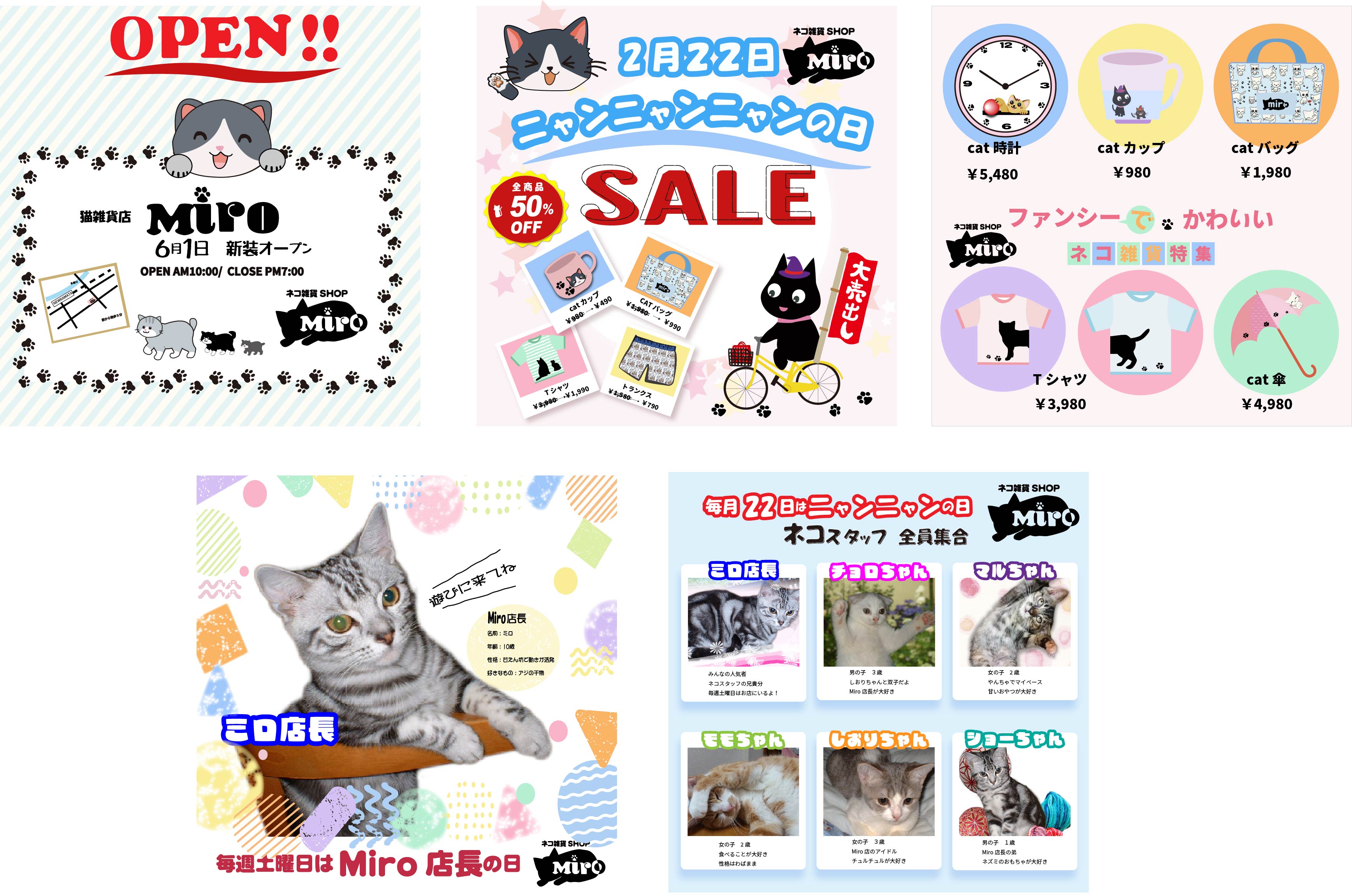| 制作物名 | 架空のネコ雑貨ショップ MIRO |