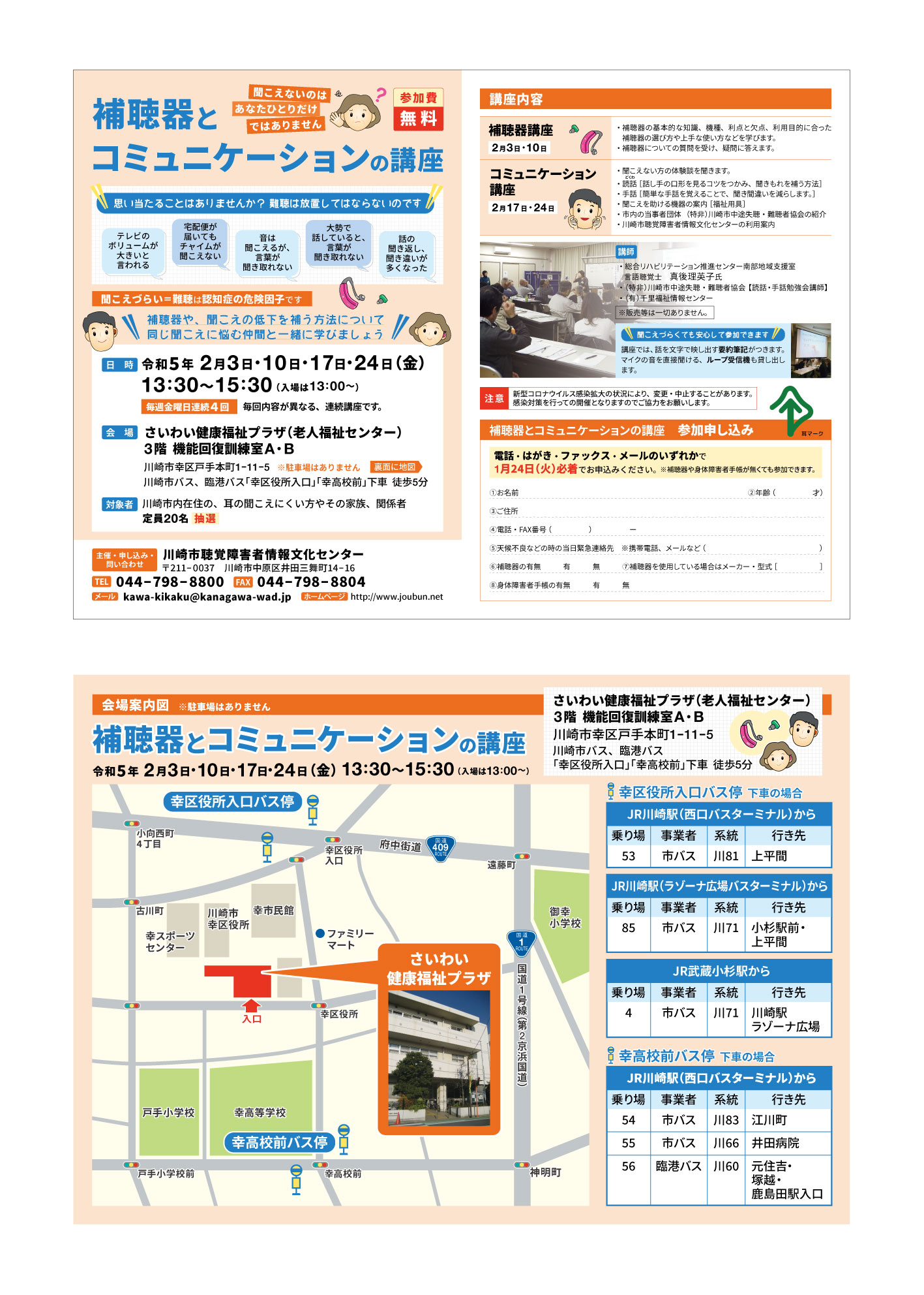 | 補聴器とコミュニケーションの講座(幸区版)チラシをして作成しました。 | |