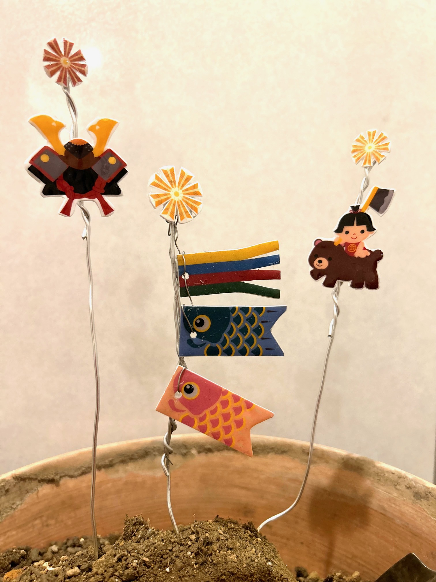 | 「こどもの日」をテーマにしたガーデンピックを作りました。 | |