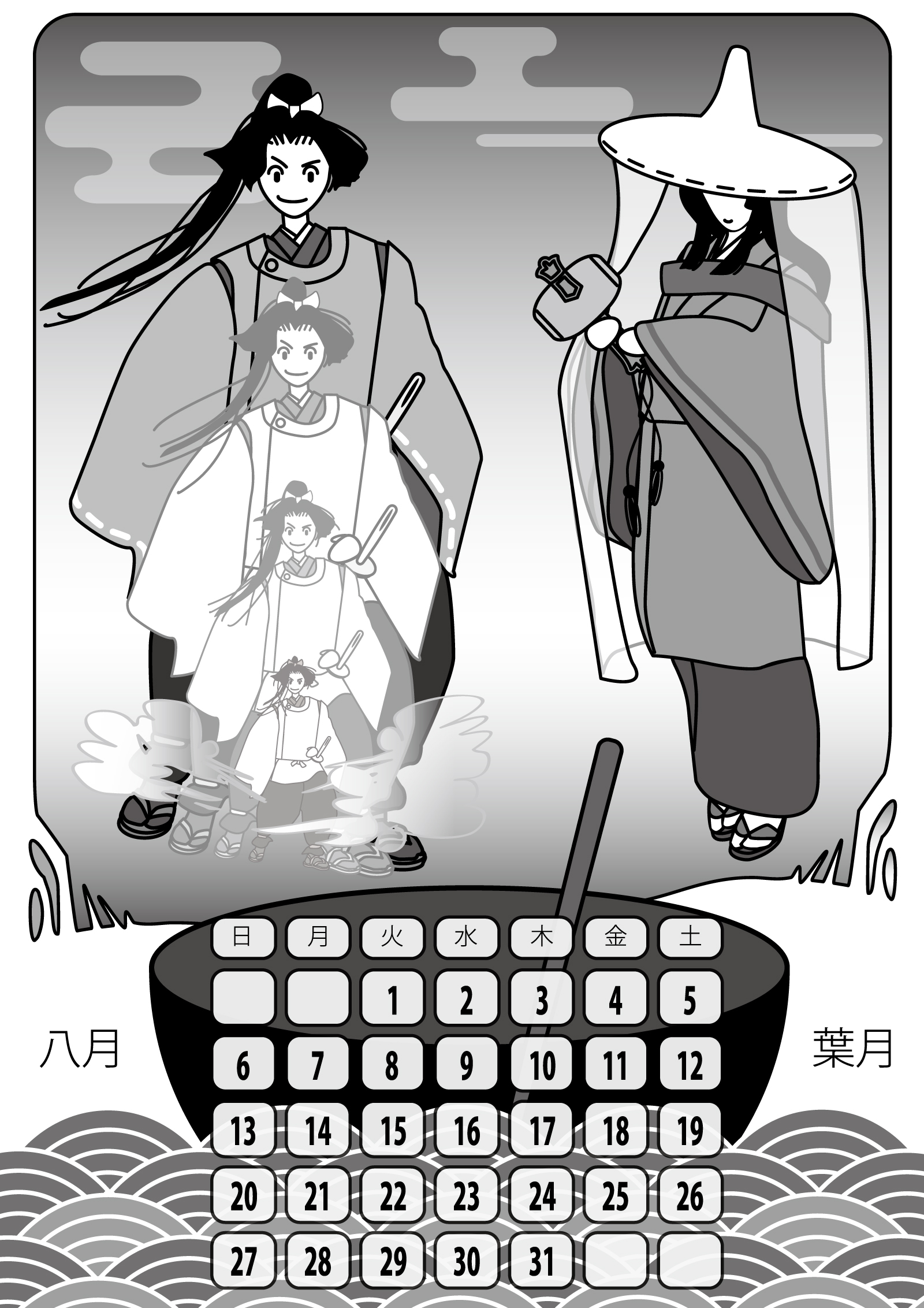 | 2023年8月のカレンダーです。 一寸法師をテーマに作りました。 | |