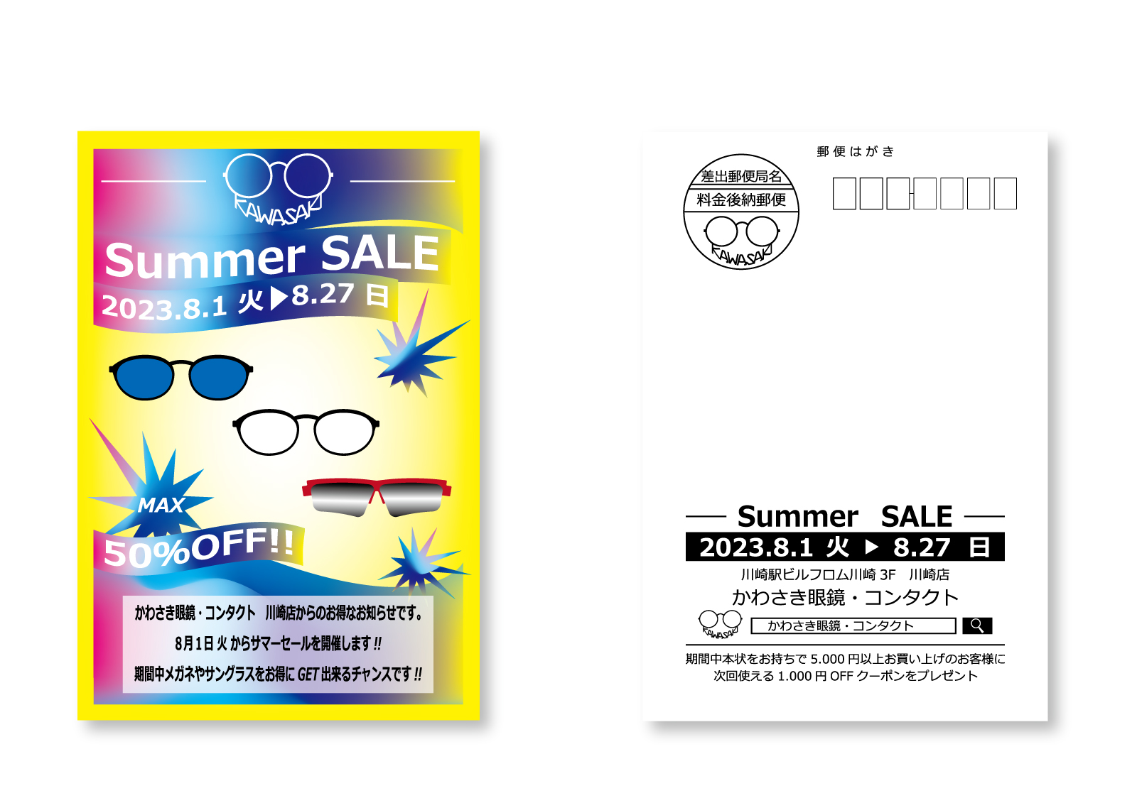 | 課題制作として架空の眼鏡店のDMを宛名面と通信面をつくりました。 | |