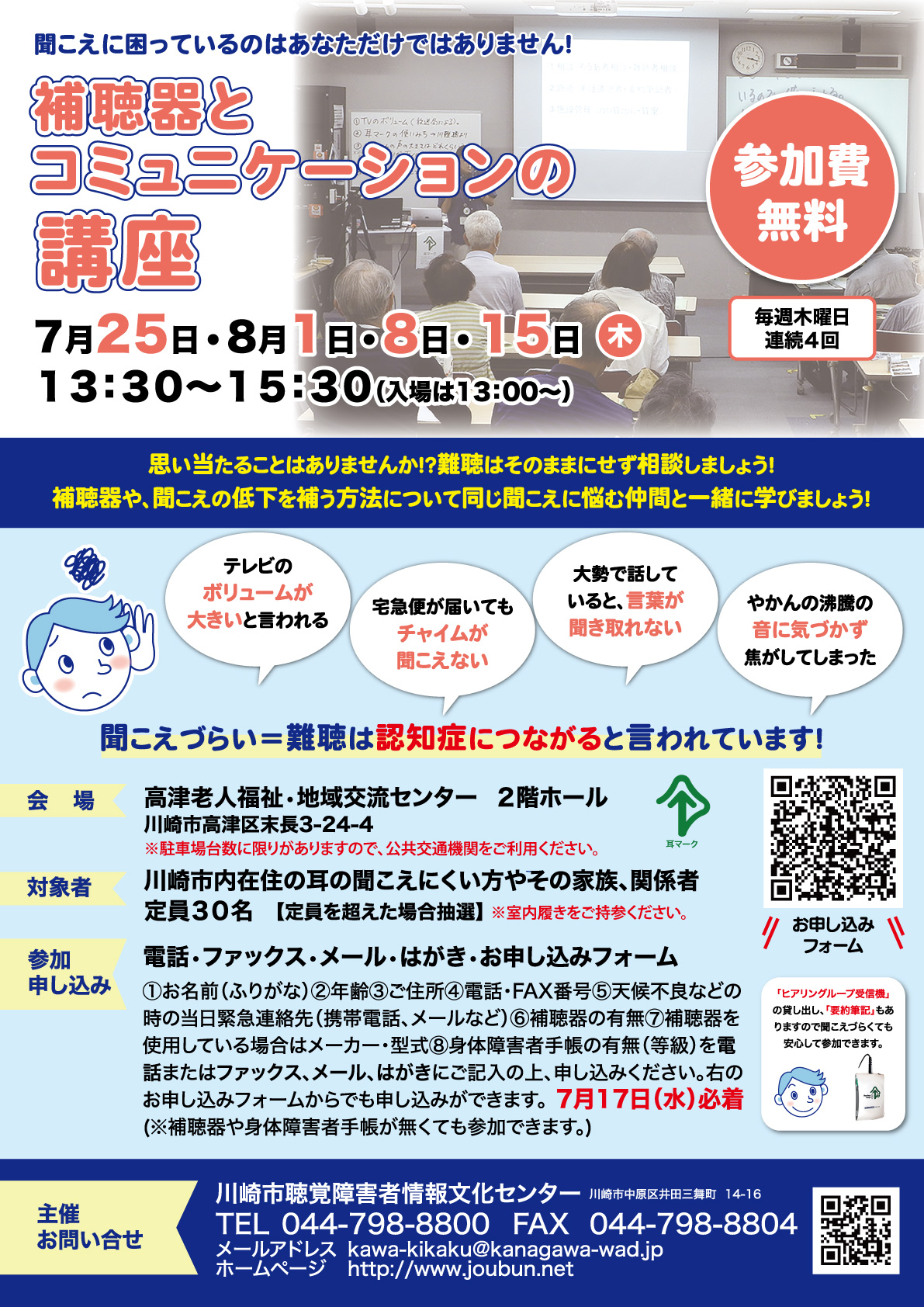 | 目的 | 補聴器とコミュニケーションの講座の受講者募集・案内 |