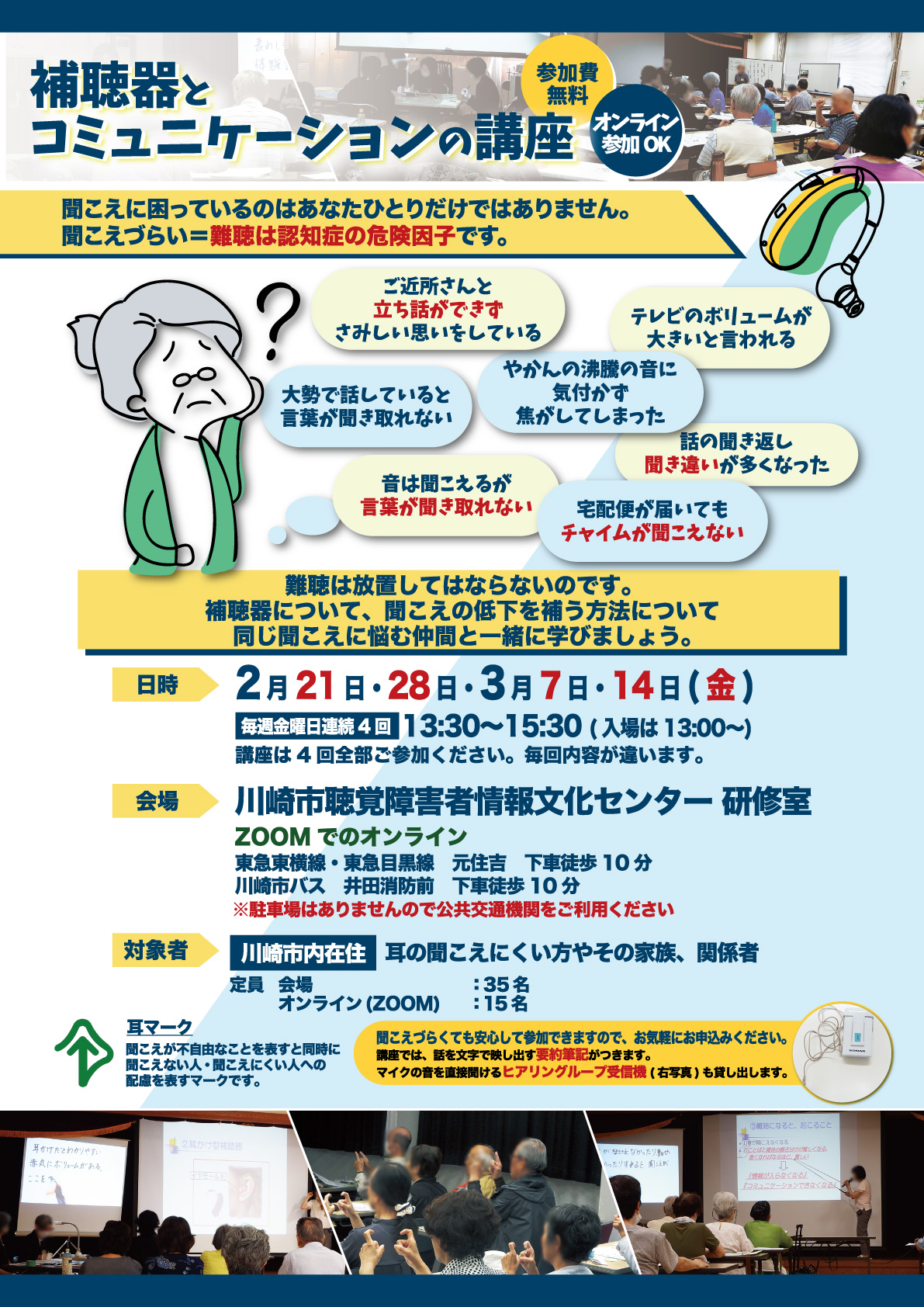 | 目的 | 補聴器とコミュニケーションの講座の受講者募集・案内 |