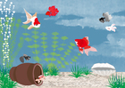 | 制作物名 | 水槽の中の金魚と大仏2点の画像を水転写した作品あれこれ |