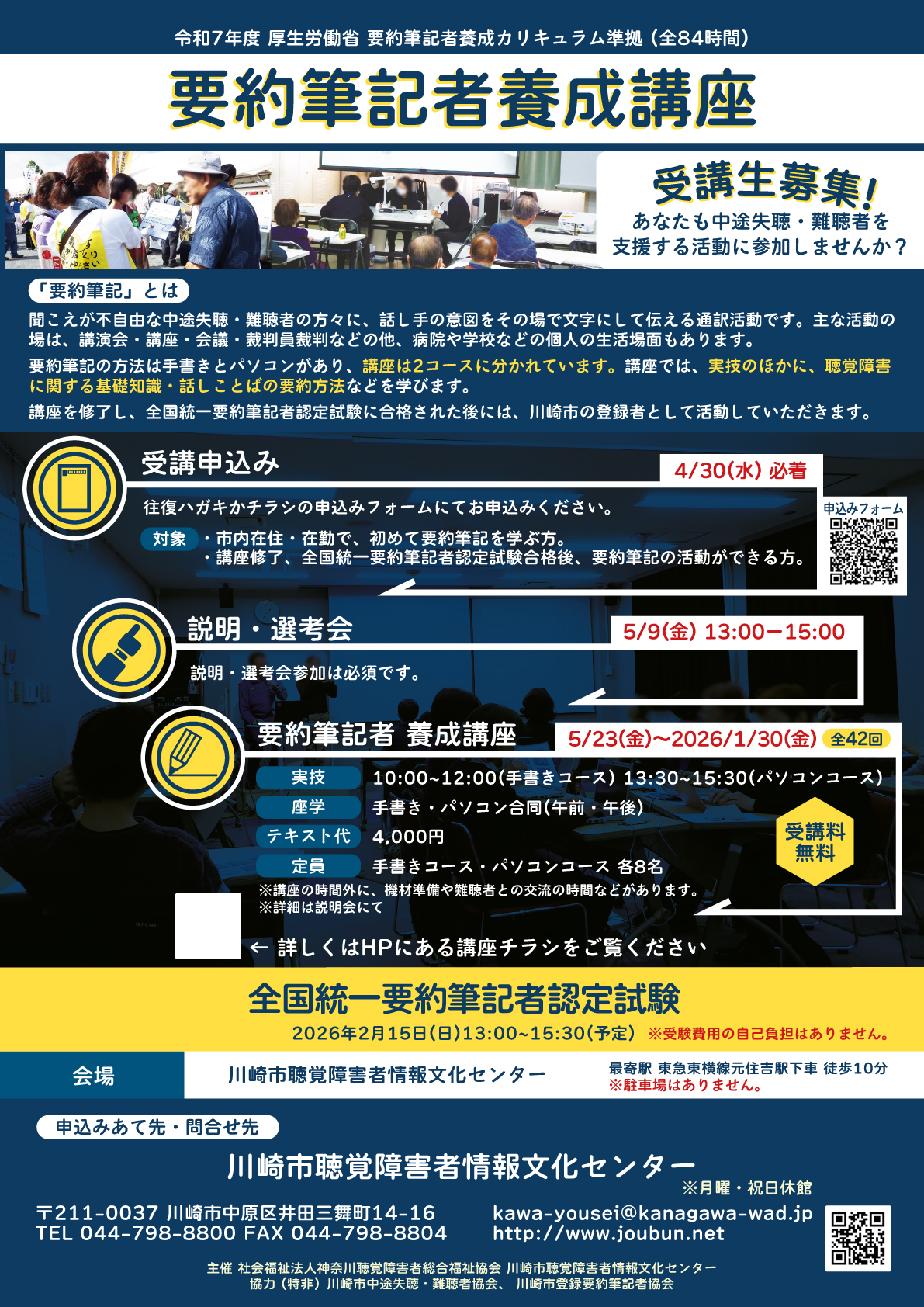| 目的 | 要約筆記者養成講座の受講生募集 |