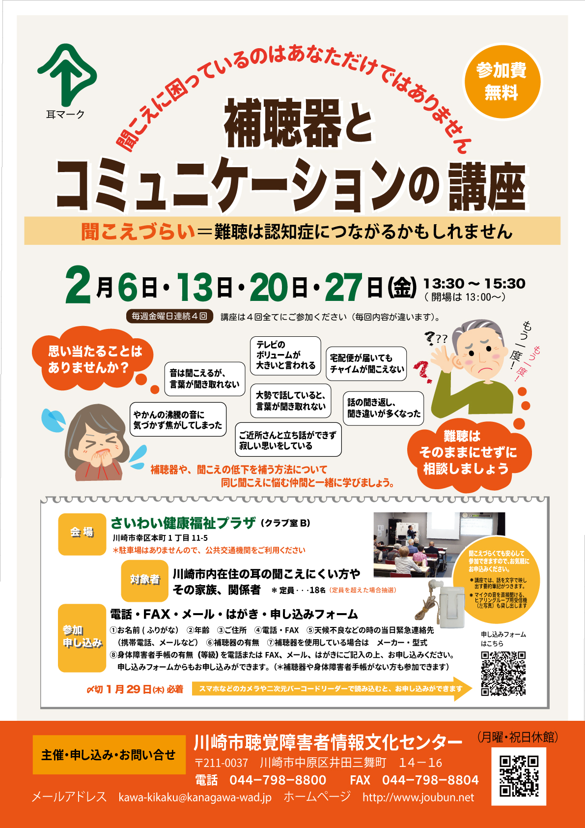 | 目的 | 補聴器とコミニケーションの講座の受講者募集。案内 |