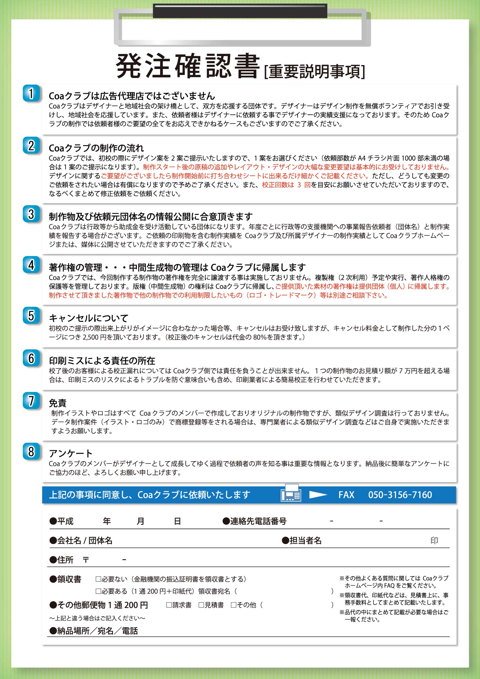 | 制作物名 | 発注確認書 |