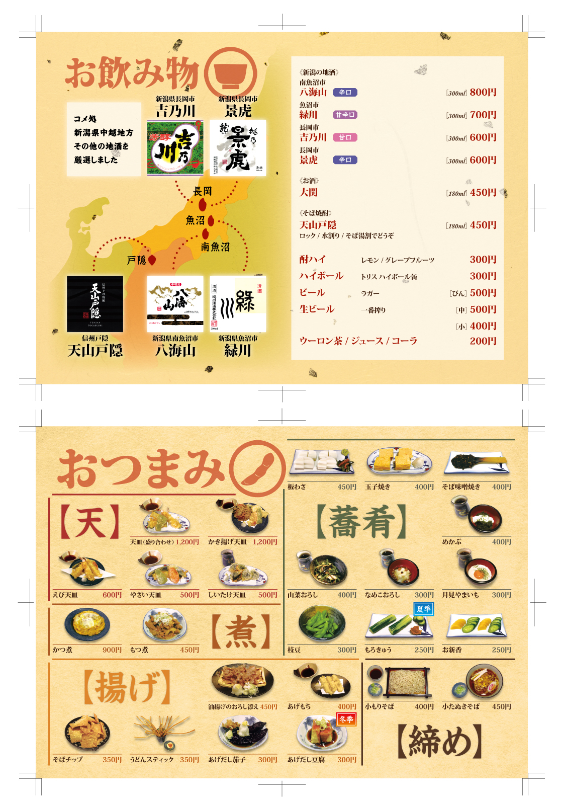 | 目的 | 店内メニュー、おつまみ&ドリンクメニュー |