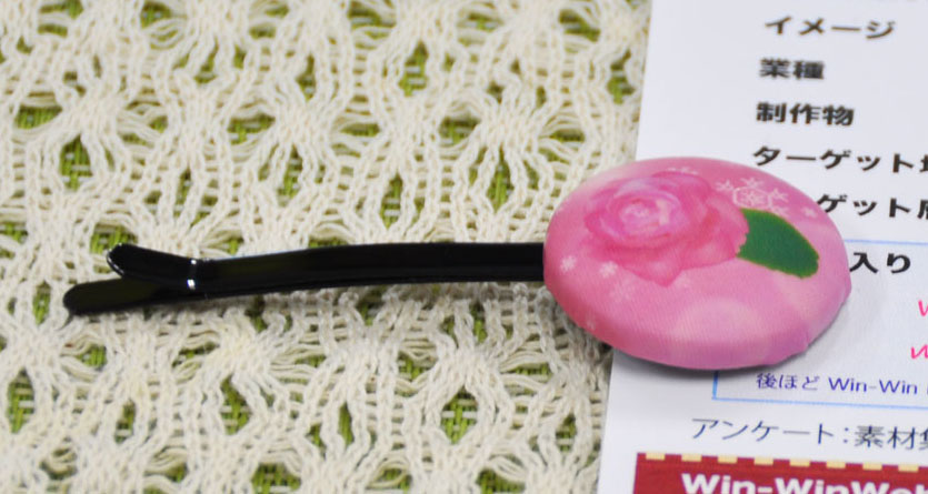 | 制作物名 | みぃちゃんのくるみボタン ヘアピン |
