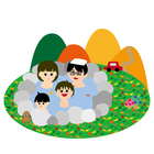 露天風呂に入る家族